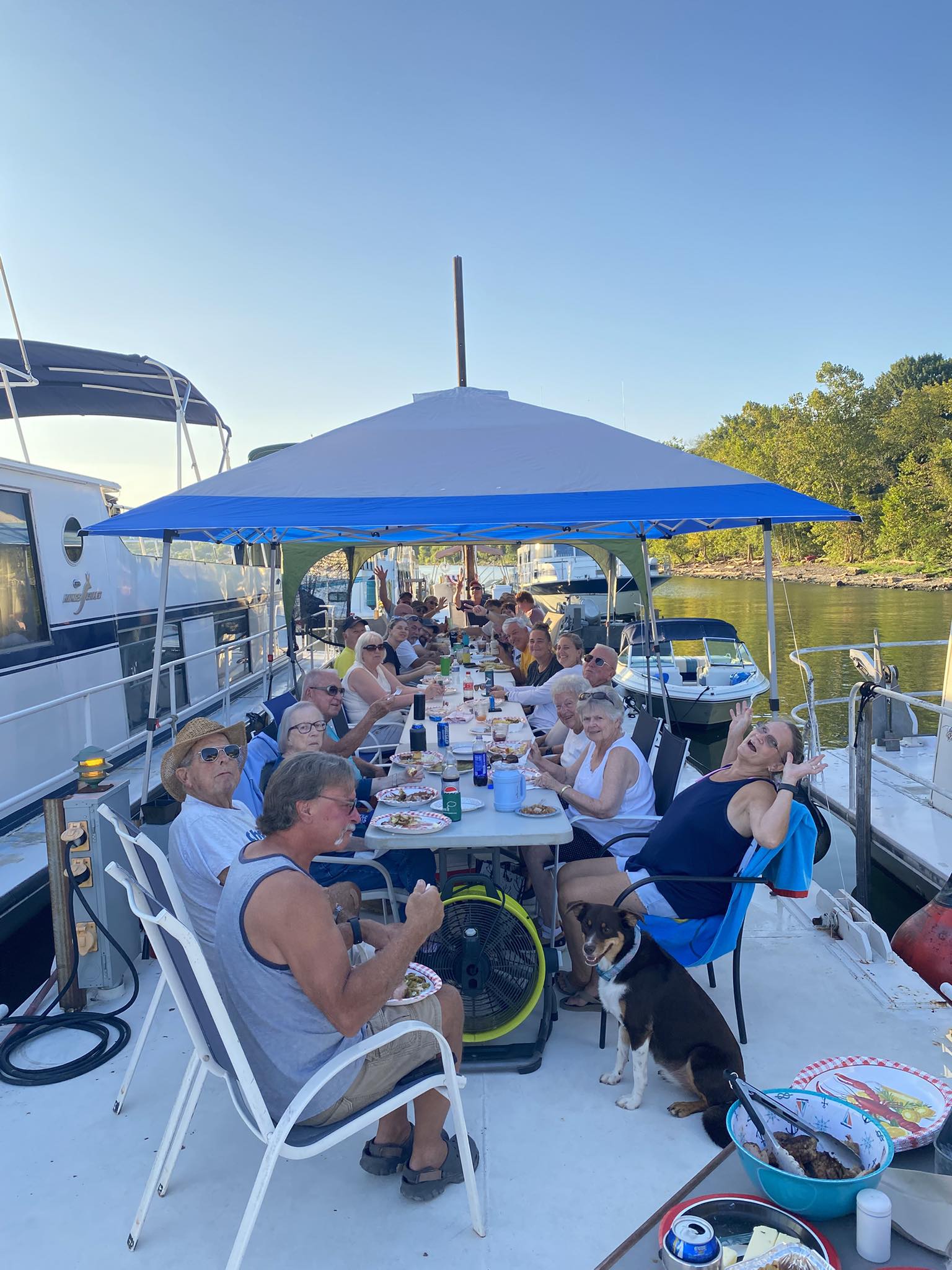 “Head-boat” party room, wet-bar, ice, kitchenette, bathrooms, showers all included